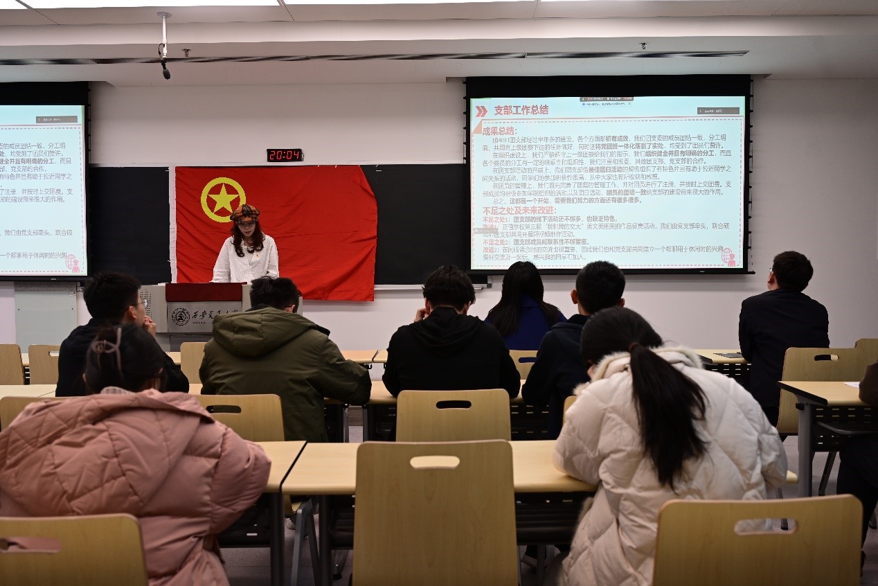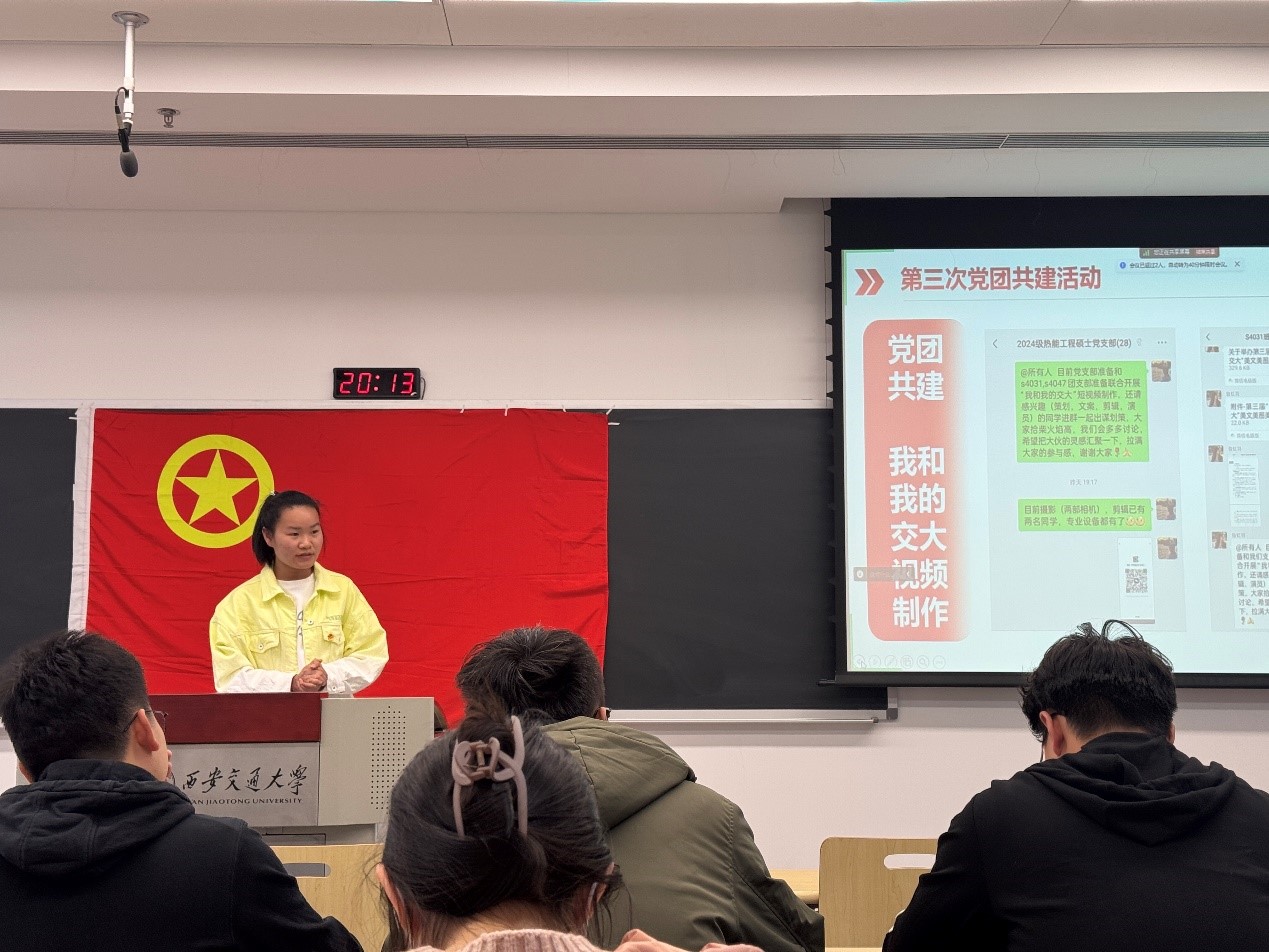 党支部书记段恒对支部党团共建相关工作进行了总结展示,介绍了党团班一体化建设所取得的丰硕成果,强调了党团协同育人的重要性,鼓励团员们积极向党组织靠拢,争做有理想、敢担当的新时代青年。