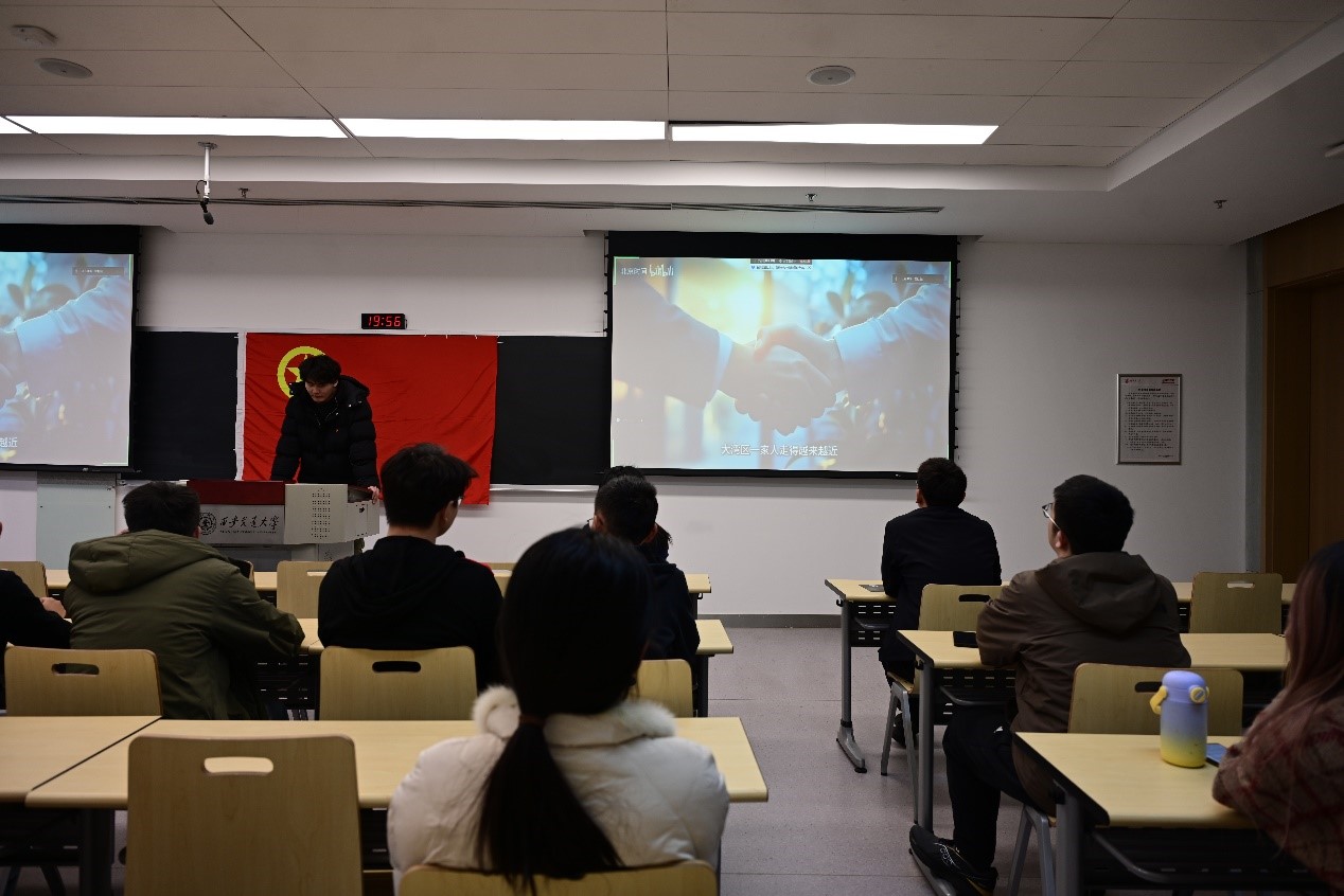 党员代表聂影超带领支部成员共同学习了2024年全国两会的精神要点,回顾了2024年工作报告中的“稳”的态势和“进”的步伐,讲解了2025年政府工作任务中关于经济建设、教育改革、绿色转型等方面的重要内容,号召团员们将个人奋斗融入国家发展大局,积极响应新时代的号召。