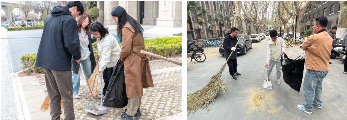 活动当天,各党团支部积极响应号召,师生党员、团员青年热情参与。在创新港校区,志愿者们分赴西迁大道南段、东梧桐路南段、1号巨构南停车场及南北庭院,对路面落叶、绿化带杂物进行彻底清扫,并对公共设施进行擦拭维护。兴庆校区则以东三楼及周边楼宇、实验室外围区域为重点,师生们分组协作,清理卫生死角、规范杂物堆放,确保责任区环境整洁有序。后勤保障部统一配发扫帚、垃圾夹、手套等劳动工具,并安排专人指导,为活动安全高效的开展提供坚实保障。