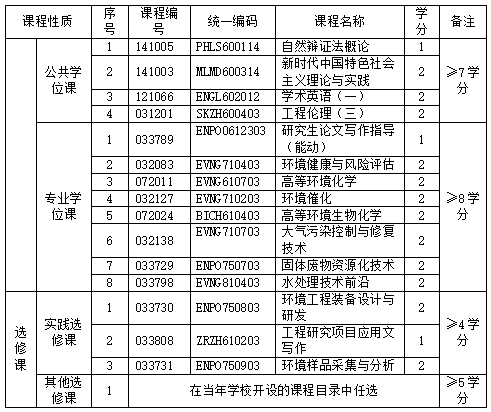 (2)知识结构:掌握能资源与环境工程领域坚实宽广的基础理论和系统深入的专门知识和工程技术基础知识;深入了解资源与环境工程领域的发展趋势与前沿方向,掌握相关的人文社科及工程管理知识。