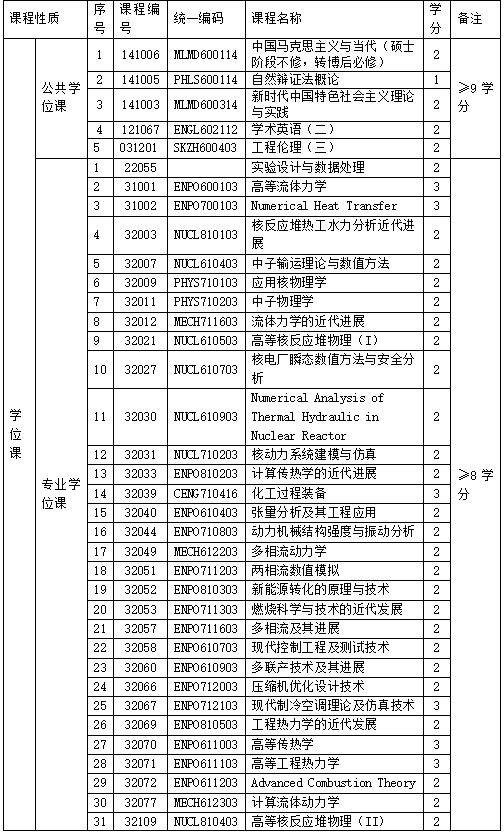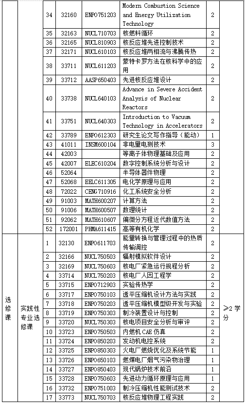 注:研究生论文写作指导(能动)必修课程,同时还必须修完4学分校企共建课程。