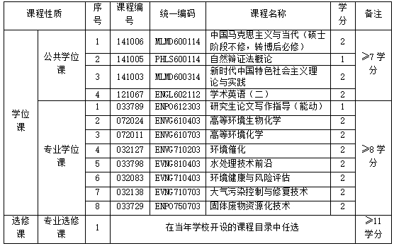 (3)基本能力:掌握科学研究的先进方法,能熟练地应用一门外语进行环境科学与工程专业的学习,具备瞄准国际学术前沿,开展学术研究和学术交流的能力。在环境科学与工程领域内做出创造性成果,具有突出的理论和工程分析能力,具有独立从事科学研究和高等教育的能力。
