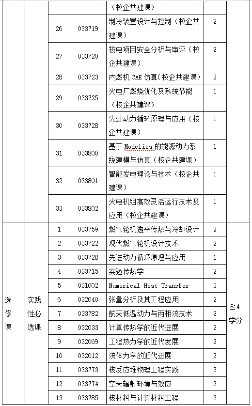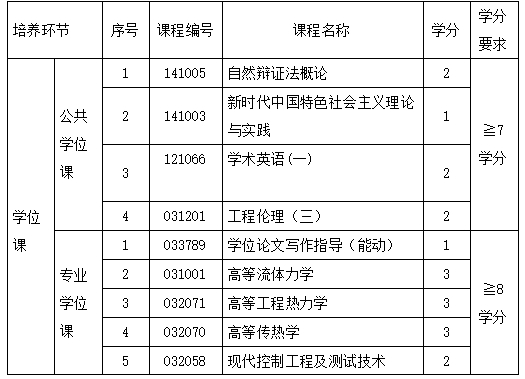 动力工程项目课程学习与必修环节基本要求