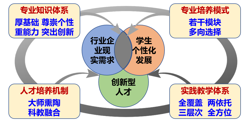 同时,发扬“重实践”传统,构建了“全覆盖、两依托、三层次”的实践教学体系,覆盖本科全过程,依托校内和校企共建基地,涵盖基础实践、专业实践和研究创新三个层次,强化创新创业教育,贯穿能力培养渐进性理念,助力学生全面发展。