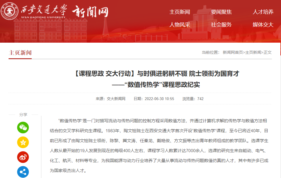 司机社 新闻网2022年6月30日以“与时俱进躬耕不辍 院士领衔为国育才”为题,介绍示范中心教师开展课程思政教学的情况。