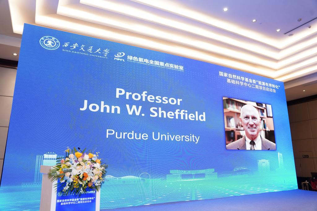 基础科学中心项目国际咨询专家,国际氢能期刊副主编、国际知名氢能专家、美国普渡大学John Sheffield教授祝贺基础科学中心二期项目顺利启动,希望能在氢能科学研究领域与郭烈锦院士领导的“能源有序转化”基础科学中心项目团队开展深入合作。