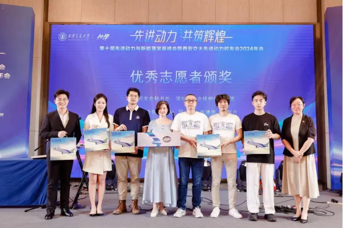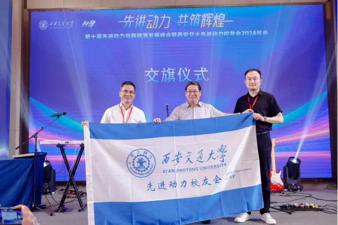 晚宴环节还举行了峰会承办方交旗仪式,经过申请和先进动力校友会讨论决定,第十一届先进动力与新能源发展峰会暨西安交大先进动力校友会2025年年会将于2025年8月第一个周六在苏州昆山举行,由校友企业昆山市易泰汽车科技有限公司承办。