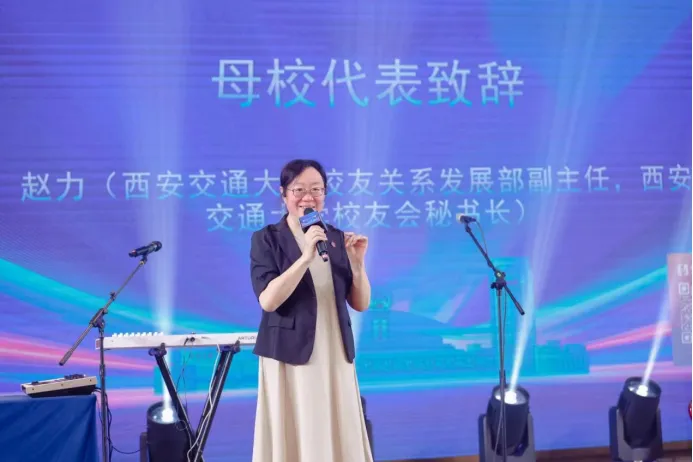 晚宴上,司机社 校友关系发展部副主任、司机社 校友会秘书长赵力致辞。她表示,希望加强校友与母校的联络,充分发挥行业校友优势为学校双一流建设和国家经济发展贡献交大力量。