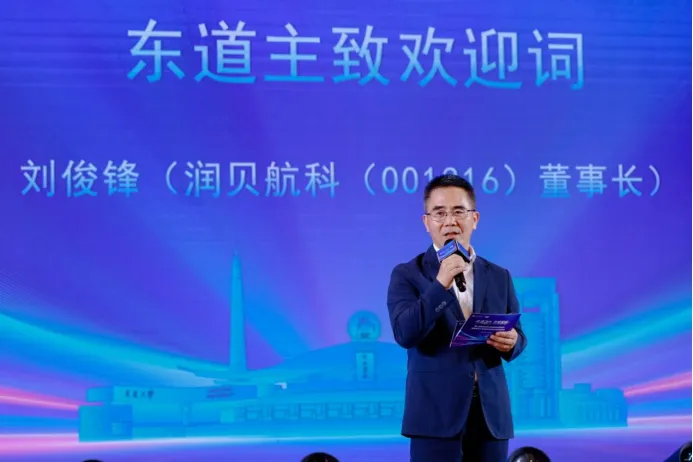 润贝航空科技股份有限公司董事长刘俊锋介绍到场嘉宾并致欢迎辞。他感恩母校的培养,对参加此次活动的学校领导、行业专家和校友表示热烈的欢迎和衷心的感谢,希望校友们传承西迁精神,把握时代机遇,汇聚力量,团结协作,迎接挑战,并祝福母校蓬勃发展。